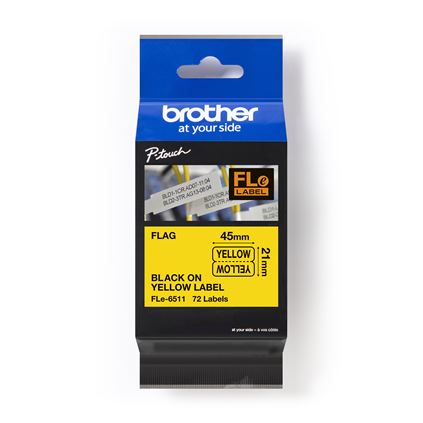 Étiquette drapeau en polyester Brother FLE6511, 21 mm x 45 mm, noir sur jaune