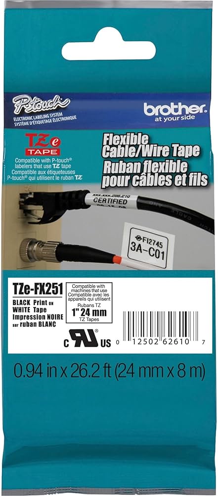 Conçu avec un matériau flexible adhérant parfaitement aux surfaces irrégulières ou cylindriques , ce ruban d'étiquettes est également conforme à la norme TAA , ce qui le rend adapté aux secteurs réglementés . Fabriqué au Japon , il est compatible avec les étiqueteuses P-touch Brother compatibles TZe et offre des performances fiables pour les applications professionnelles.
