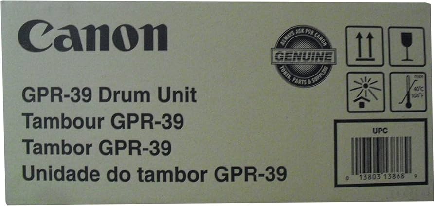 Fabriqué au Japon et conforme à la réglementation TAA , le tambour GPR-39 est conforme aux normes d'approvisionnement des gouvernements et des entreprises. Le remplacement régulier du tambour est essentiel pour préserver la qualité d'impression et éviter les temps d'arrêt inutiles. Grâce à l'utilisation de composants Canon d'origine , les utilisateurs bénéficient d'une compatibilité matérielle optimale, de besoins de maintenance réduits et d'un flux de travail ininterrompu pour leurs opérations de traitement de documents.