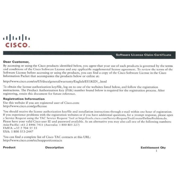 Licence CISCO E-Delivery ASR1000 MACSEC 100G, pièce de rechange