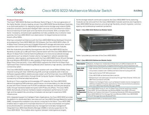 Feature Set IP-based SAN connectivity, interoperability with Cisco modules