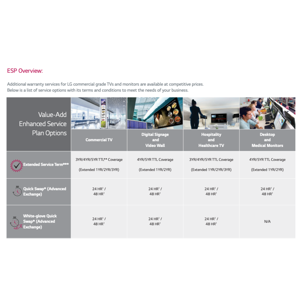 LG : échange rapide de 3 ans et 48 heures pour écran d'affichage 49 pouces avec service sur site
