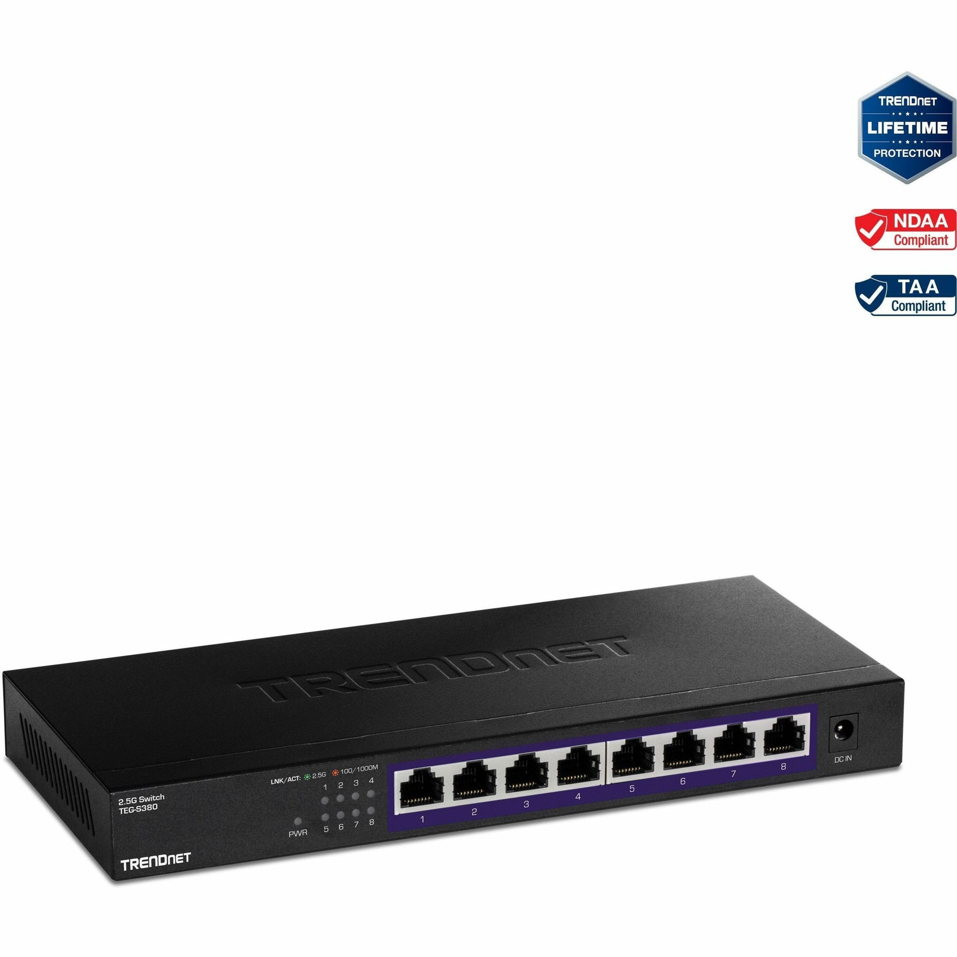 Commutateur 2,5G non géré à 8 ports TRENDnet TEG-S380, montage mural