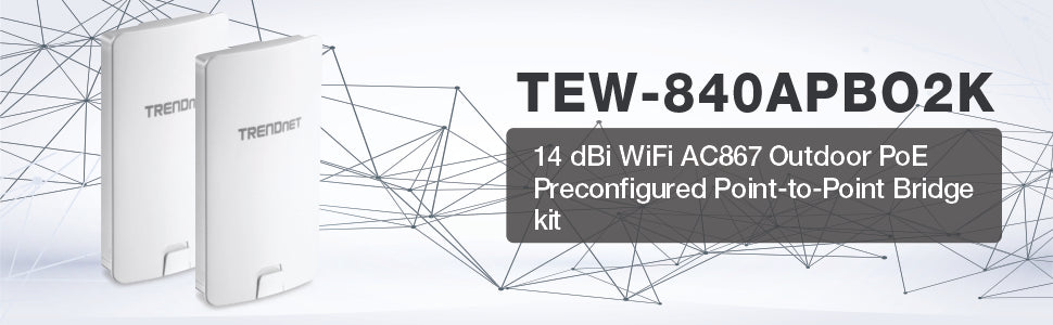 Kit pont Wi-Fi P2P extérieur AC867 14 dBI TRENDnet TEW-840APBO2K