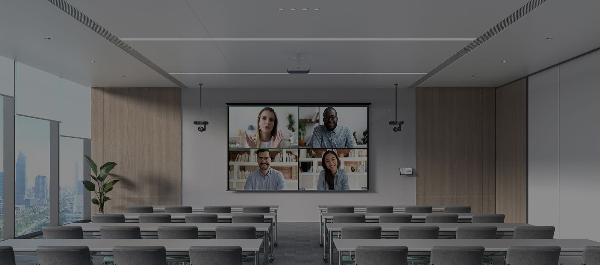 • Les deux caméras intelligentes et AVHub permettent un suivi automatisé des intervenants et une flexibilité de disposition pour des conférences immersives.