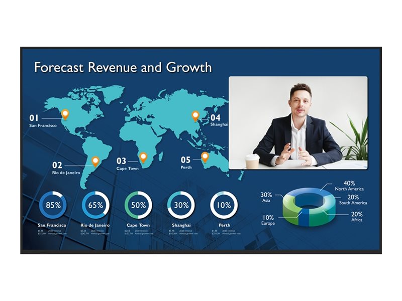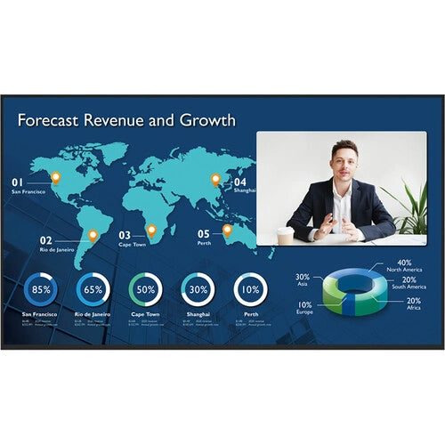 Le BenQ CS8601 est un écran LCD professionnel de 86 pouces doté d' une résolution 4K UHD , d'une dalle IPS et d'une luminosité de 450 nits pour un affichage grand angle éclatant. Il prend en charge une profondeur de couleur de 10 bits , un rapport de contraste de 1200:1 et un écran antireflet durable. Intégré à Android 8.0 , avec 4 Go de RAM et 32 Go de stockage , il permet un fonctionnement autonome et prend en charge une utilisation 18h/24 et 7j/7 en orientation paysage . La connectivité est robuste avec HDMI 2.0, VGA, USB-A/B, RS232 et RJ45. Deux haut-parleurs de 16 W et une faible consommation en veille (< 0,5 W) complètent ses fonctionnalités, ce qui le rend idéal pour l'affichage dynamique, les salles de classe ou les présentations professionnelles.