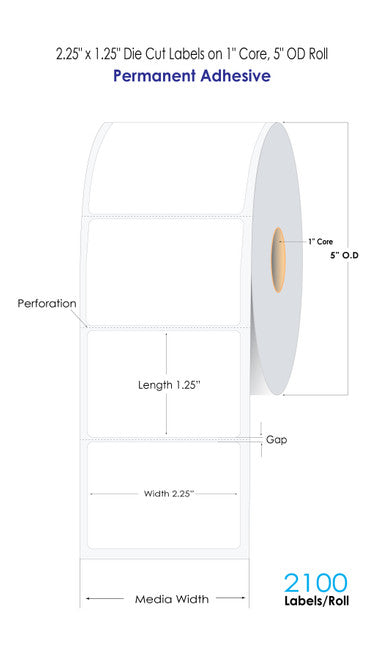 • Étiquettes en papier transfert thermique blanc de 2,25 x 1,25 pouces