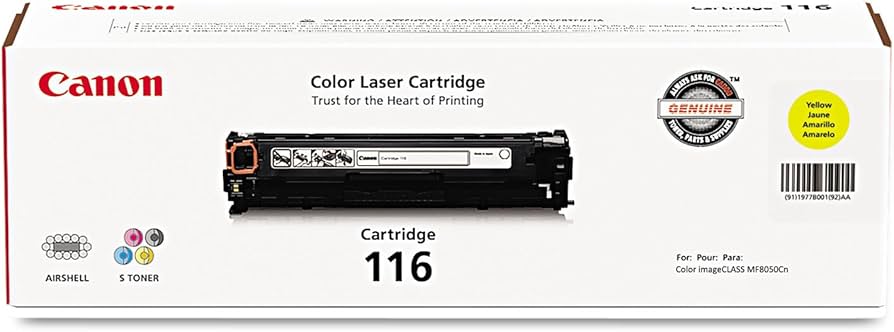 La cartouche de toner jaune Canon 116 (référence 1977B001AA ) est une cartouche de toner laser conçue pour les imprimantes Canon imageCLASS et LBP . Elle offre un jaune éclatant et une autonomie allant jusqu'à 1 500 pages avec une couverture de 5 % . Fabriquée au Japon et conforme aux normes TAA , elle répond aux normes des environnements sécurisés et gouvernementaux. Pièce d'origine Canon , elle garantit des performances constantes, minimisant les risques associés aux cartouches tierces. Idéale pour les environnements professionnels exigeant une impression couleur fiable et une compatibilité optimale avec les appareils.