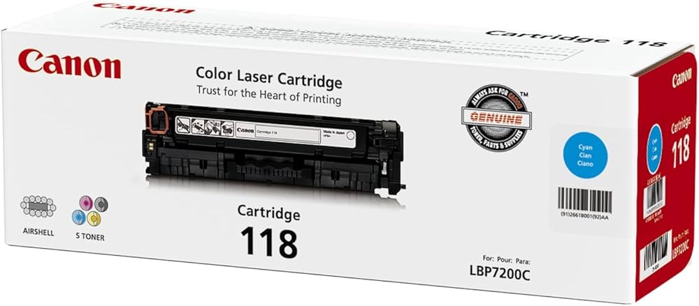 La cartouche de toner cyan Canon 118 (CRG118 C) est conçue pour des performances optimales avec certains modèles Canon imageCLASS, notamment les imprimantes LBP7200CDN , LBP7660CDN , MF726CDW , MF729CDW et bien d'autres. Ce toner , conforme à la norme TAA, offre jusqu'à 2 900 pages avec une couverture de 5 %, produisant des couleurs cyan éclatantes avec une précision d'impression laser . Fabriqué au Japon , il garantit des impressions homogènes et de haute qualité, idéales pour les documents professionnels et les supports marketing.