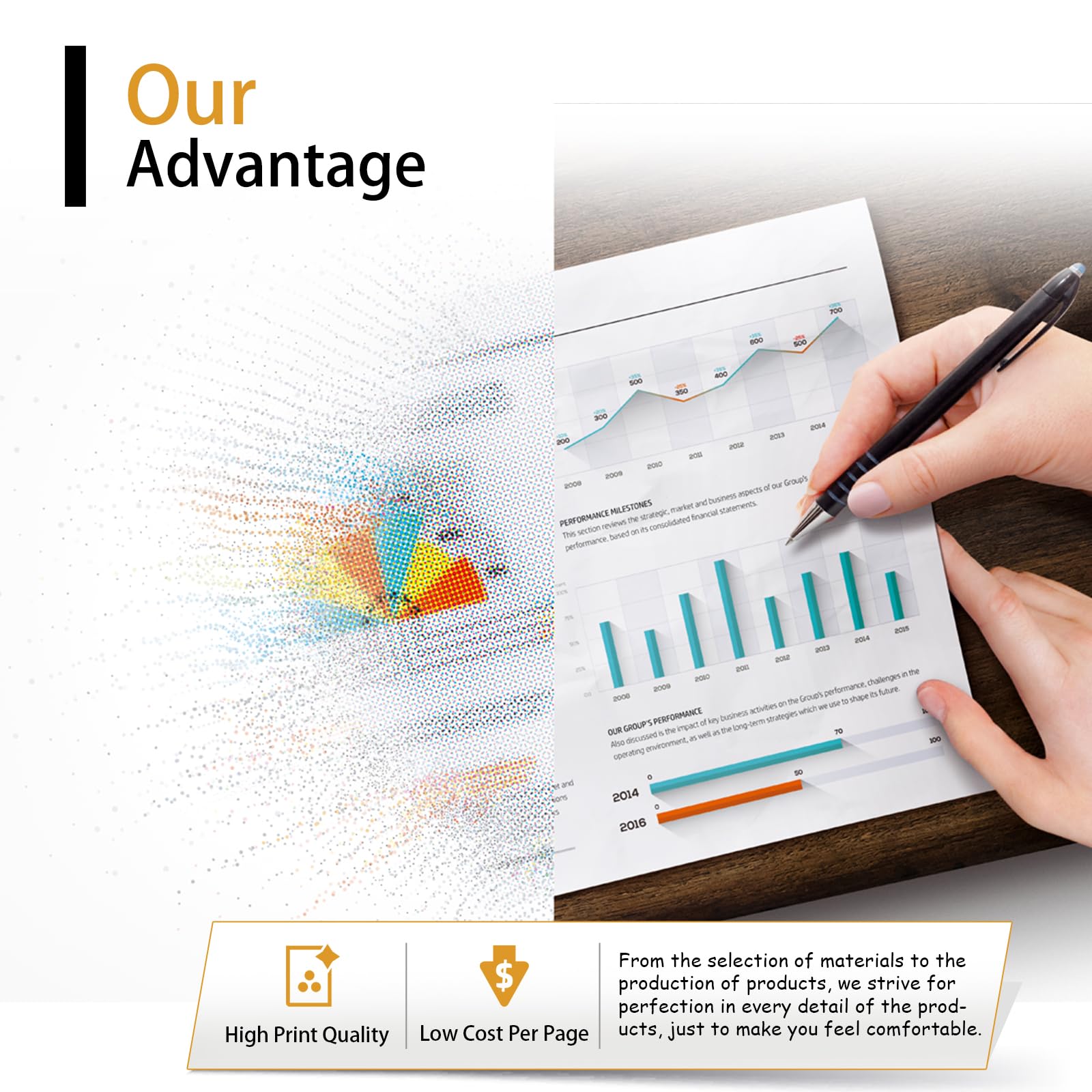 - La capacité à haut rendement minimise les temps d'arrêt et la fréquence de remplacement, augmentant ainsi la productivité dans les environnements de bureau très fréquentés.