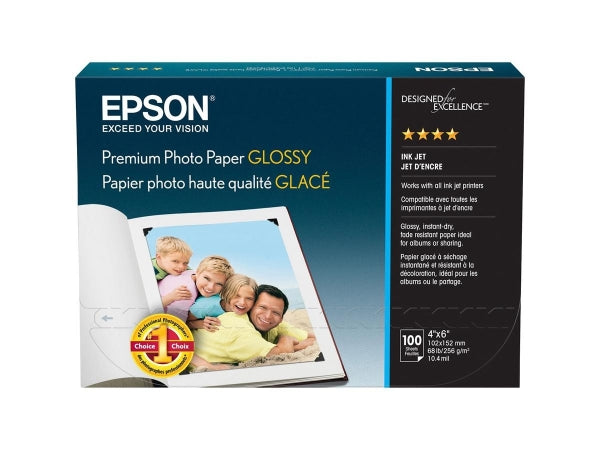Papier photo glacé Epson 4x6 sans bordure, 50 feuilles (S041809)
