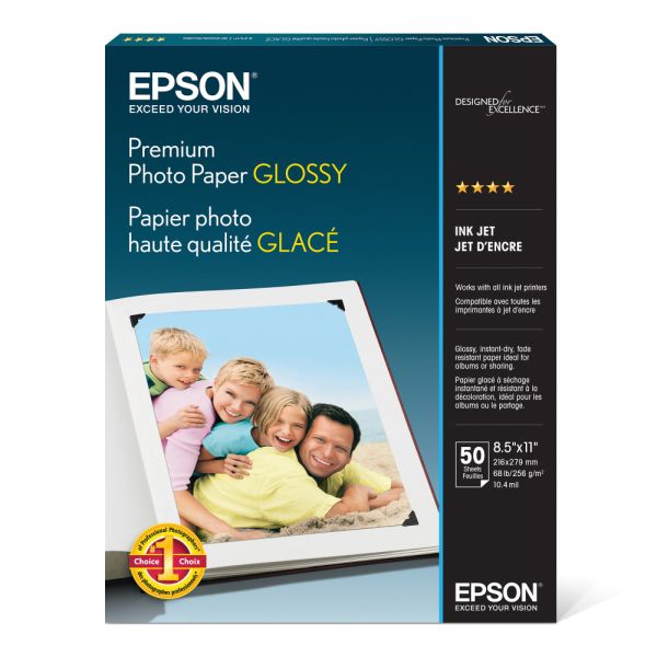 Papier photo glacé EPSON Premium, format Lettre, 50 feuilles