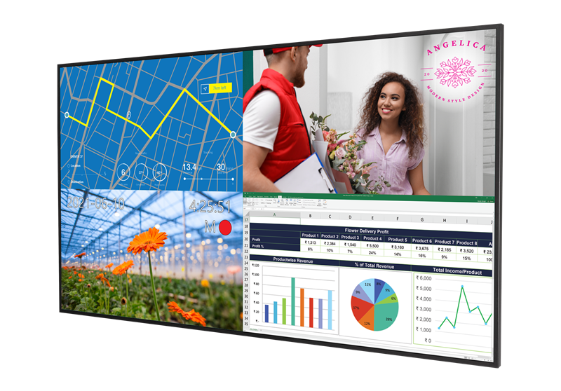 - Offre des visuels UHD d'une clarté cristalline avec de larges angles de vision et une gamme de couleurs vibrantes, idéales pour les environnements professionnels.