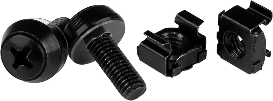 Ces vis et écrous à cage M6 x 12 mm de haute qualité facilitent le montage de l'équipement dans votre rack ou armoire de serveur - Vis de rack M6 - Écrous à cage M6 - Vis M6 - Vis de montage M6 - Vis et écrous à cage M6 - Paquet de 100 - Construction entièrement en acier noir
