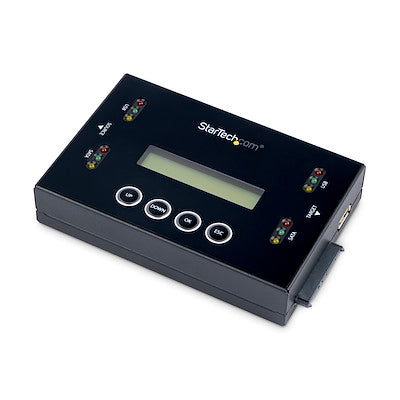 Duplicateur et effaceur de disque dur SATA autonome 1:1 pour le clonage et l'effacement de disques, sans PC ; 4 modes de duplication, dont la copie secteur par secteur, jusqu'à 18 Go/min (SATA), 2,4 Go/min (USB) ; 5 modes d'effacement ; écran LCD ; voyants multifonctions