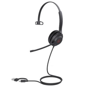 Casque filaire USB pour communications unifiées ; écouteur monaural (une seule oreille) ; adaptateur USB-A 2.0 + USB-A vers USB-C ; double microphone antibruit ; haut-parleur 35 mm ; voyant d'activité ; coussinets d'oreille en cuirCaractéristiques
