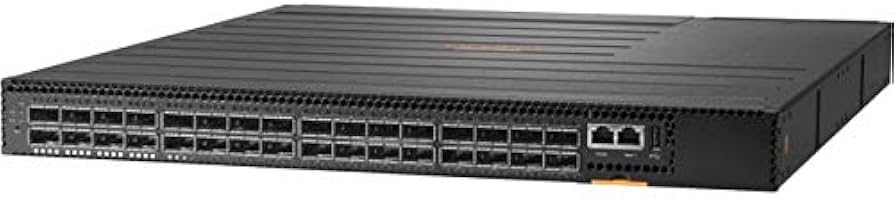 The HP Aruba 8320 32p 40G QSFP+ Switch Bundle JL579A#ABA is a Layer 3 managed Ethernet switch featuring 40 QSFP+ ports for 40 Gigabit Ethernet connectivity, making it ideal for data-heavy business environments. With 64GB SSD, 8GB Flash, and 16GB RAM, it supports high-speed operation and dependable configuration storage. The bundled X472 module includes 5 fans and 2 power supplies, providing efficient cooling and redundant power for uninterrupted performance. Designed for enterprise networks that demand performance, TAA compliance and a 5-year warranty further support long-term, secure deployments. Despite its robust features, it fits easily into rack-mounted setups thanks to its compact build.
